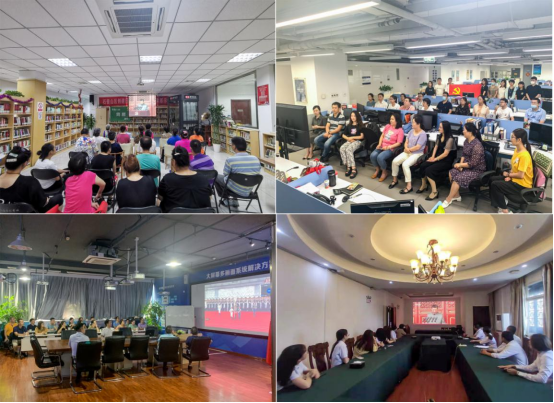 华录集团组织全体党员干部在北京大厦会议室、大连大厦报告厅、各单位会场、工作现场等地收看庆祝中国共产党成立100周年大会,并认真聆听习近平总书记重要讲话。集团公司党委书记、董事长欧黎及领导班子成员、集团总部全体党员、各级单位领导班子及党员干部员工共计2352人通过集中观看等形式进行收看学习,赓续红色血脉,共庆百年华诞。