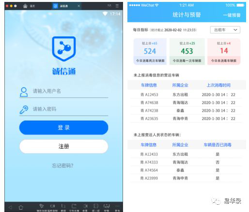 公司自主研发的“诚信通”APP是面向疫情防控一线业务场景打造的集信息采集和统计分析于一体的应用。作为疫情防控和TOCC应用的组成部分,“诚信通”APP重点响应防控一线对出行人员、车辆信息采集便捷化应用需要,为疫情期间交通出行监测、信息查询追溯提供鲜活数据支撑,有效提高联防联控工作效能,保障了疫情期间交通运输的科学管理。目前,根据西宁市交通运输局的实际需求,公司迅速组织研发力量,紧急部署“诚信通”APP,为西宁交通运输一线业务人员(客流检疫人员、司机、站点消毒工作人员)提供乘客信息登记、车辆消毒登记、防护物资管理、防控人员健康监测及信息统计分析自动化服务,减轻了一线人员填报压力,提高了信息采集的效率,做到了市内出行行程的可追可溯。同时,“诚信通”扫码小程序“公众出行实名登记扫码系统”系统在青海省西宁市和河南省南阳市的应用,助力城市交管部门实时、有效开展疫情防控追溯工作,保障疫情期间城市公共交通的稳定运行,有效控制疫情扩散。
