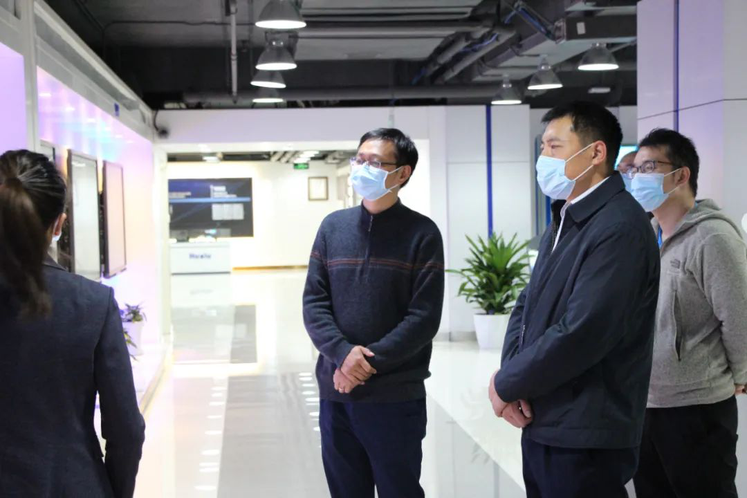 李炜一行首先参观了华录集团展厅,了解了公司在大容量蓝光存储技术、城市数据湖等大数据领域的战略布局,并结合交通、安全、能源、制造等行业领域的数字化应用展开了沟通交流。