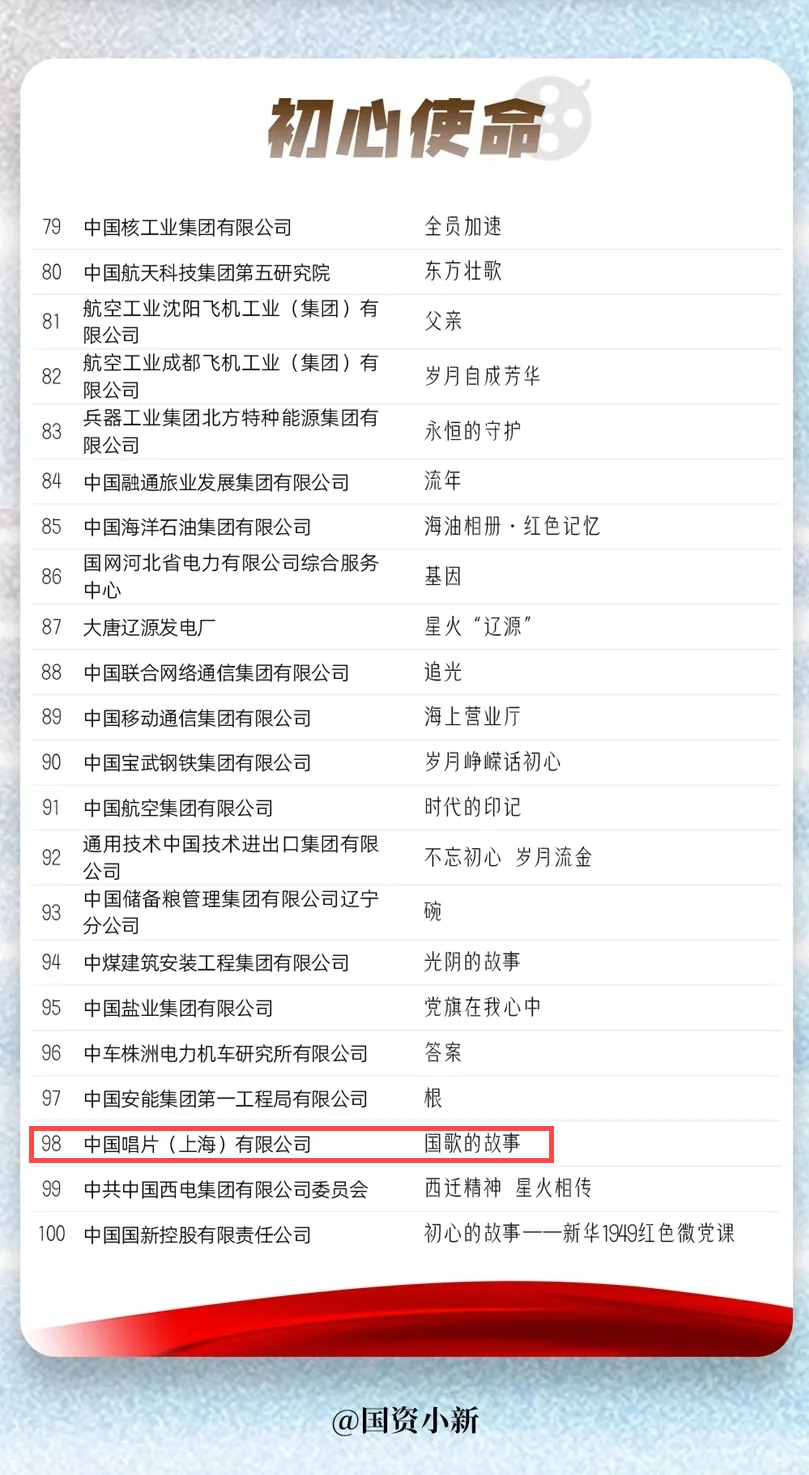 9月17日,“大国顶梁柱 永远跟党走”中央企业庆祝建党百年百部微电影(微视频)展映发布活动在京举办。活动现场发布了初心使命、大国重器、敬业奉献、社会责任等四个主题100部优秀作品。华录集团旗下中国唱片(上海)公司制作的微视频《国歌的故事》获优秀奖。