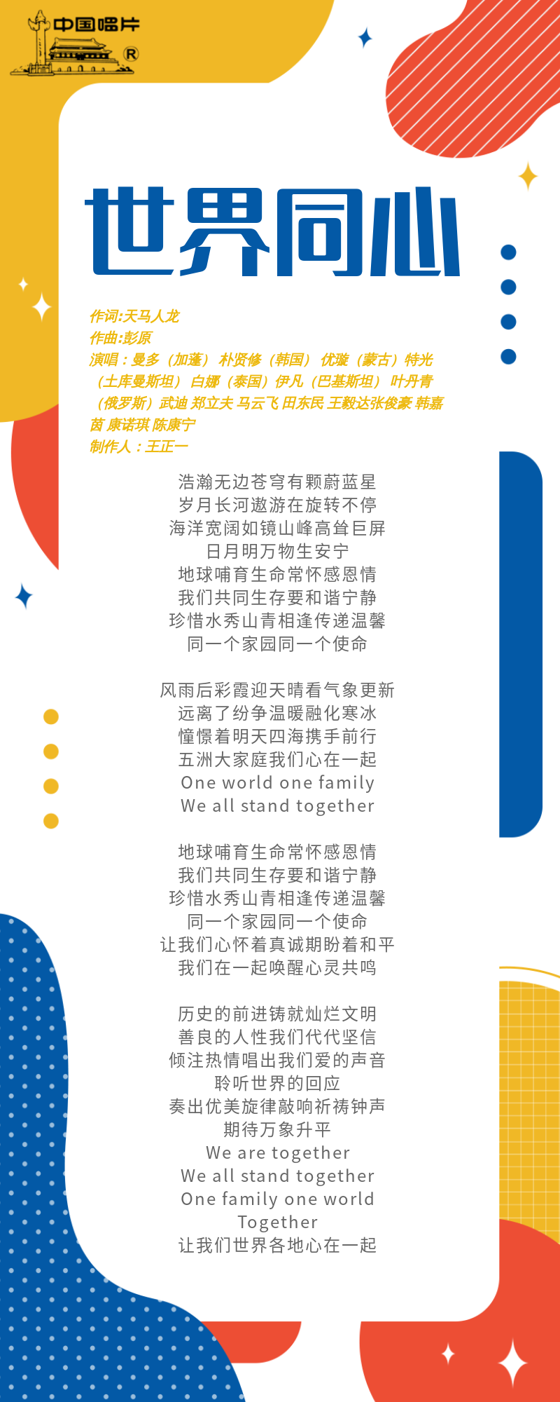 【世界同心】歌曲简介