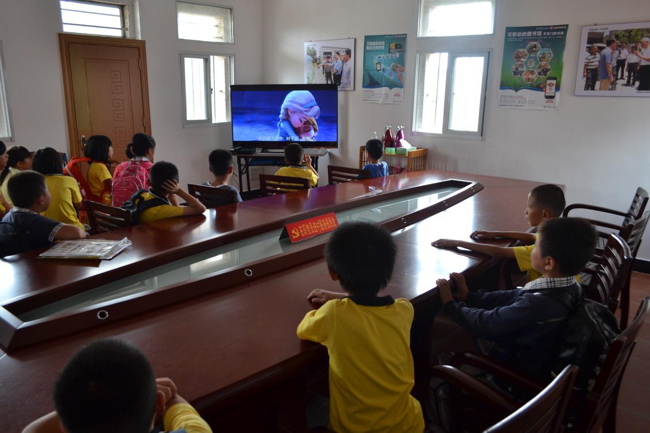 图2 军营村小学生放学后来到卫星数字阅览室观看精彩的数字节目