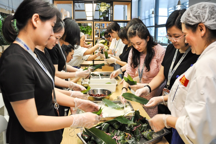 6月5日,值此端午节来临之际,中国华录集团北京工会在员工餐厅组织开展“与粽不同 端午DIY手工活动”,大家一起包粽子、缝香包,在这里度过了一个温情满满的时光。