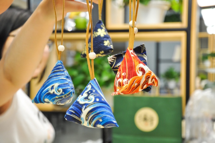 包完粽子,开启缝香包环节。端午节自古就有佩戴香包的传统习俗,用花布缝制,内装艾草,散发出天然的草药香。古俗含义熏香、祛病、求福,随着历史的演变,传统观念渐渐淡化,而制作香囊的风俗却保存了下来,成为对美好生活的衷心祝愿。