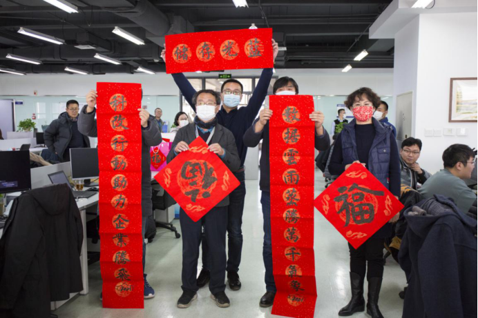 集团工会和书画艺术协会为入驻华录大厦的子公司送出了量身打造的春联和福字,将一副副散发着浓浓墨香、凝聚着浓浓真情的春联、福字和象征着吉祥的小礼品送到广大职工手中。活动现场共送出福字福袋三百余份,不仅为广大职工送去了节日的祝福,而且也能品味到中华文化精髓的魅力,营造了喜庆祥和的春节氛围。
