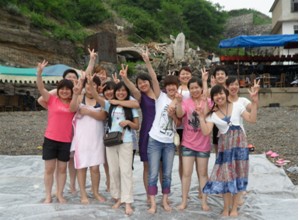 庚寅中伏,金华录整机机芯课团支部在公司的号召下,围绕着“美丽的大连我的家”这一主题,三十余名团员青年,欢聚“三脑瓜”这片依山傍水、风光旖旎的沙滩上。告别城市的喧嚣,忘记身心的烦恼,投入大自然的怀抱里,让我们又回到了童年的记忆里。团支部的女同志们,挽起裤脚,光着脚丫,伴着徐徐的海风,双脚踩在柔软的沙子上。她们或哈腰俯身,寻找海中那美丽贝壳和小石子;或翘首伸肢,摆出那迷人的妩媚姿态,留下这青春的靓影;男同志们则显得粗犷豪放,不管三七二十一,换上泳装直入沧海,平静的水面顿时浪花四溅,一片欢呼雀跃。岸上的几个“好战分子”更是活跃,提议进行了沙滩竞走比赛,输的一队要接受惩罚,惩罚的手段便是:将输方集体丢入大海中,喂鲨鱼,哈哈…比赛进行的很热火朝天,队友们争先恐后,迈着大步伐,可是越是用力的走,越是往下陷,顿时人仰马翻。大家都小心翼翼的前进着,队友们互相鼓励着、帮助着,可比赛结果往往都是残酷的,胜出的一队簇拥着、欢笑着,输了的一队也互相安慰着,欢笑着,熟话说“胜败乃兵家常事”嘛,但是他们必须遵守游戏规则,接受大家的惩罚:丢到大海里喂鲨鱼,呵呵…畅心的欢笑过后,大家围坐在一起,畅想着未来,谈论着人生,年轻的我们高举双手拍出不同的节奏,铿锵有力、震撼苍穹…